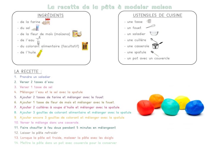 Cet atelier permettra à votre enfant de mémoriser le vocabulaire nécessaire pour réaliser la recette de la pâte à modeler maison.