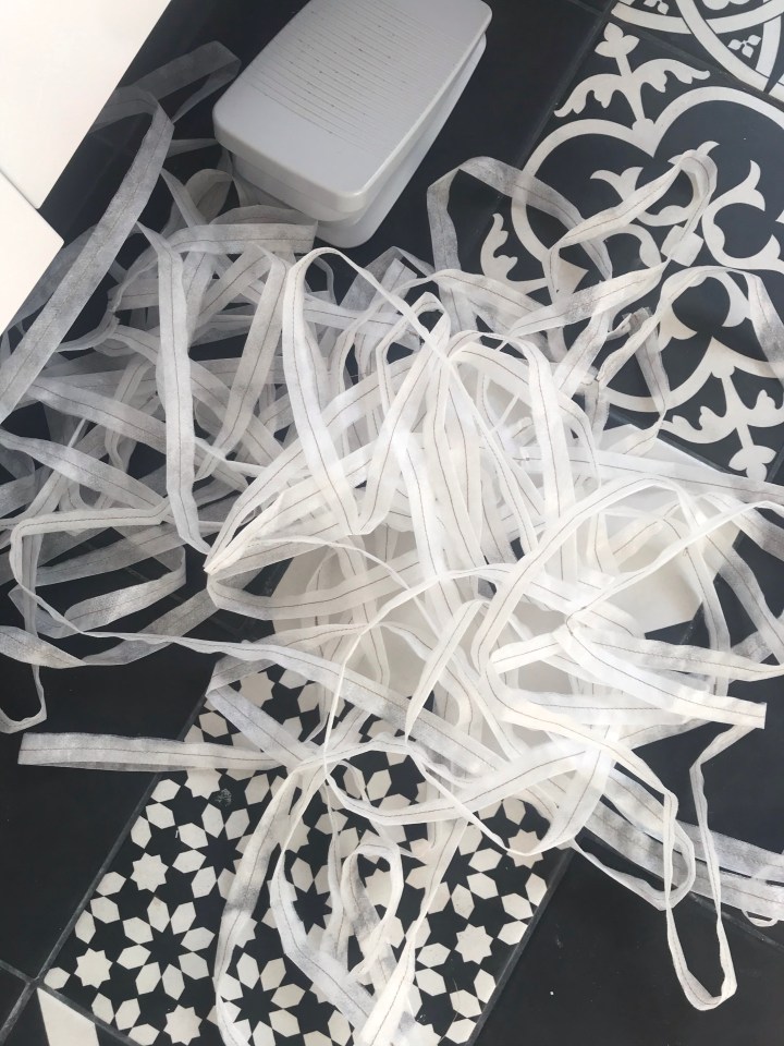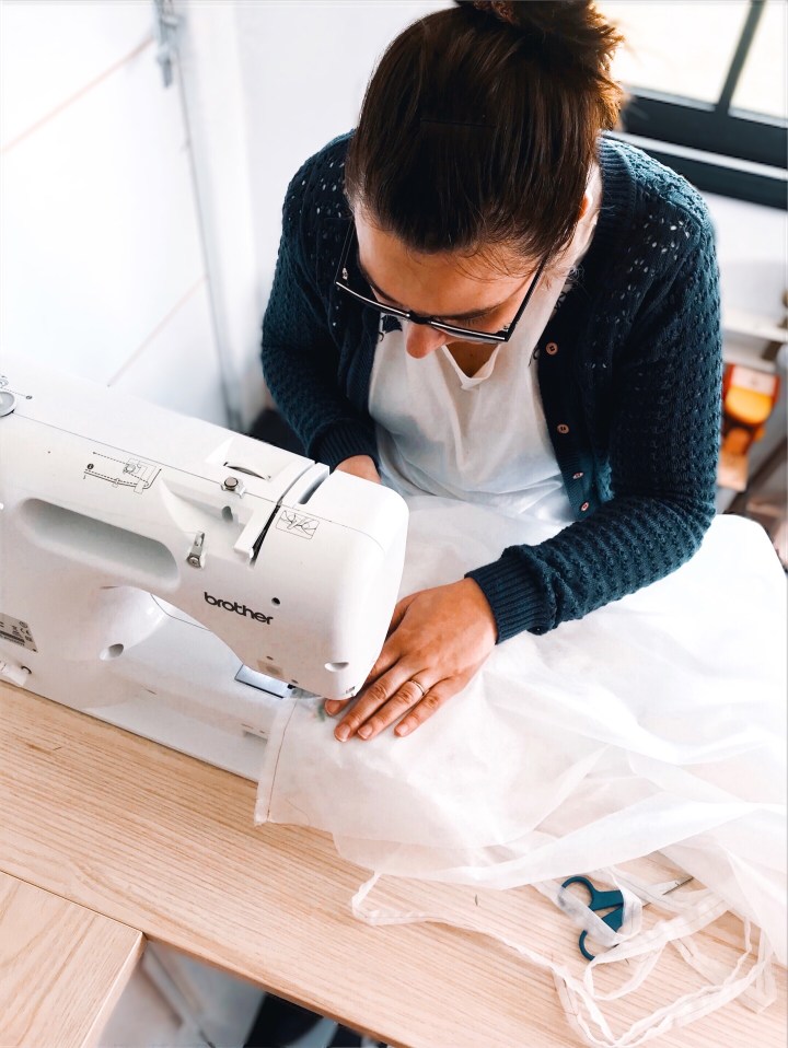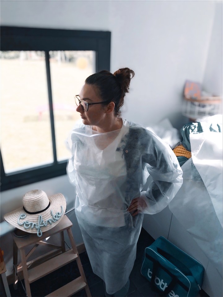 J’ai voulu me rendre utile et j’ai répondu à l’appel de la maison Lener Cordier qui cherchait des couturières bénévoles pour assembler des sur-blouses pour le personnel soignant de la région. J’ai ainsi reçu les pièces découpées, le fil et le patron pour coudre 30 sur-blouses. Si l’assemblage en lui même n’était pas trop difficile, ce fût très chronophage. Mais je ne regrette pas mes deux jours et demi à coudre sans relâche…