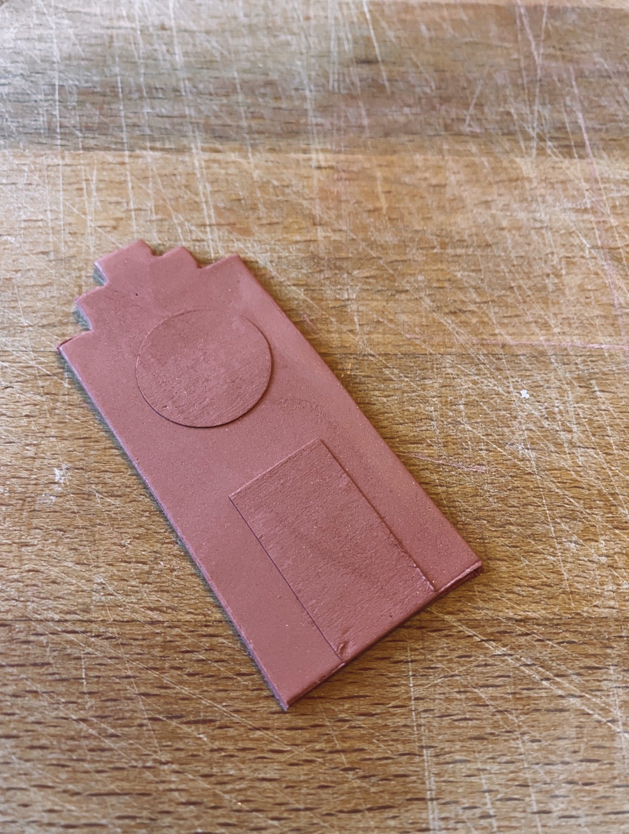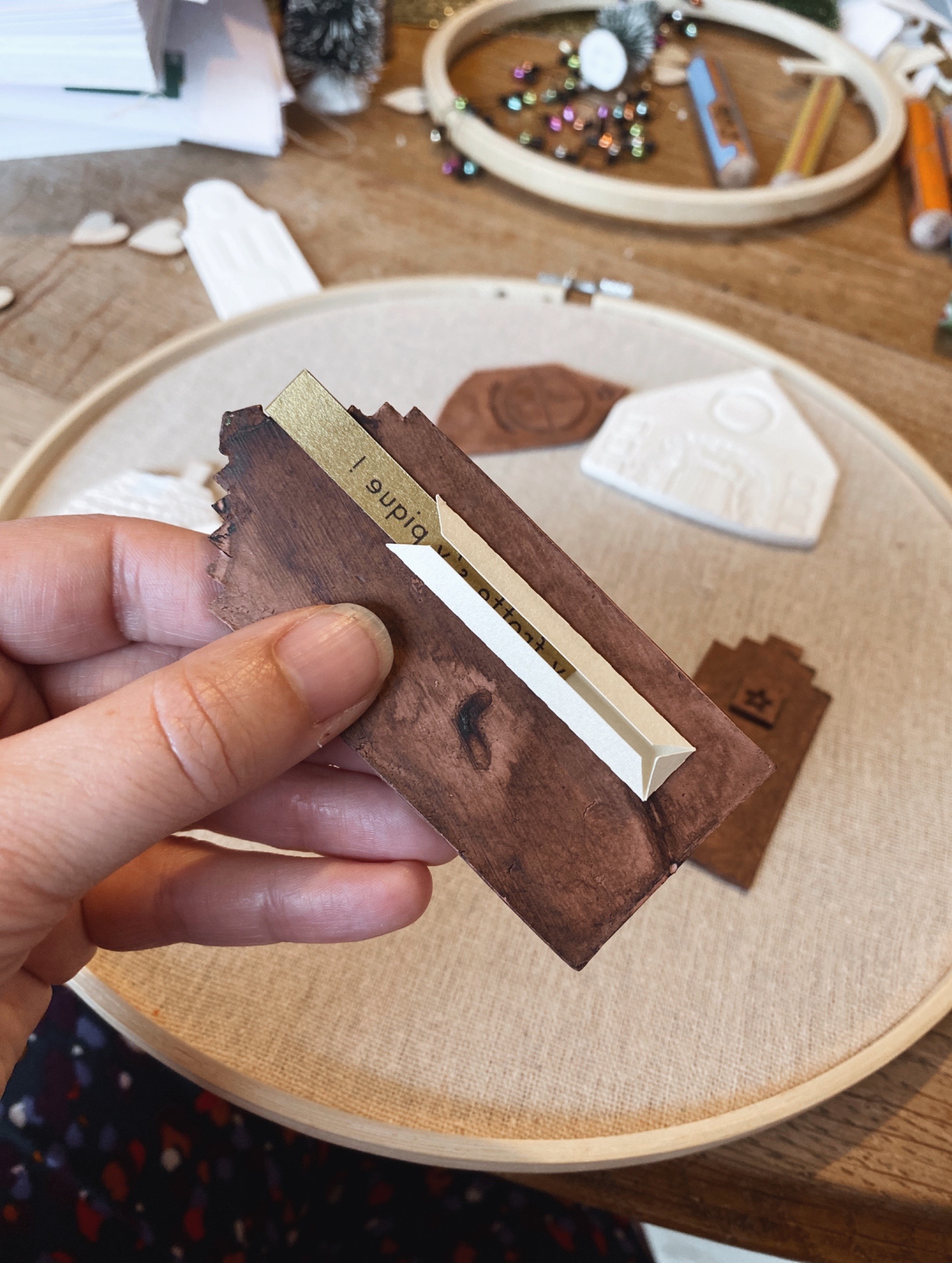 La pâte à modeler terracotta est devenue rose en séchant! J’ai donc utilisé du brou de noix pour la colorer. Je ne regrette pas ma décision car le rendu me plait énormément.