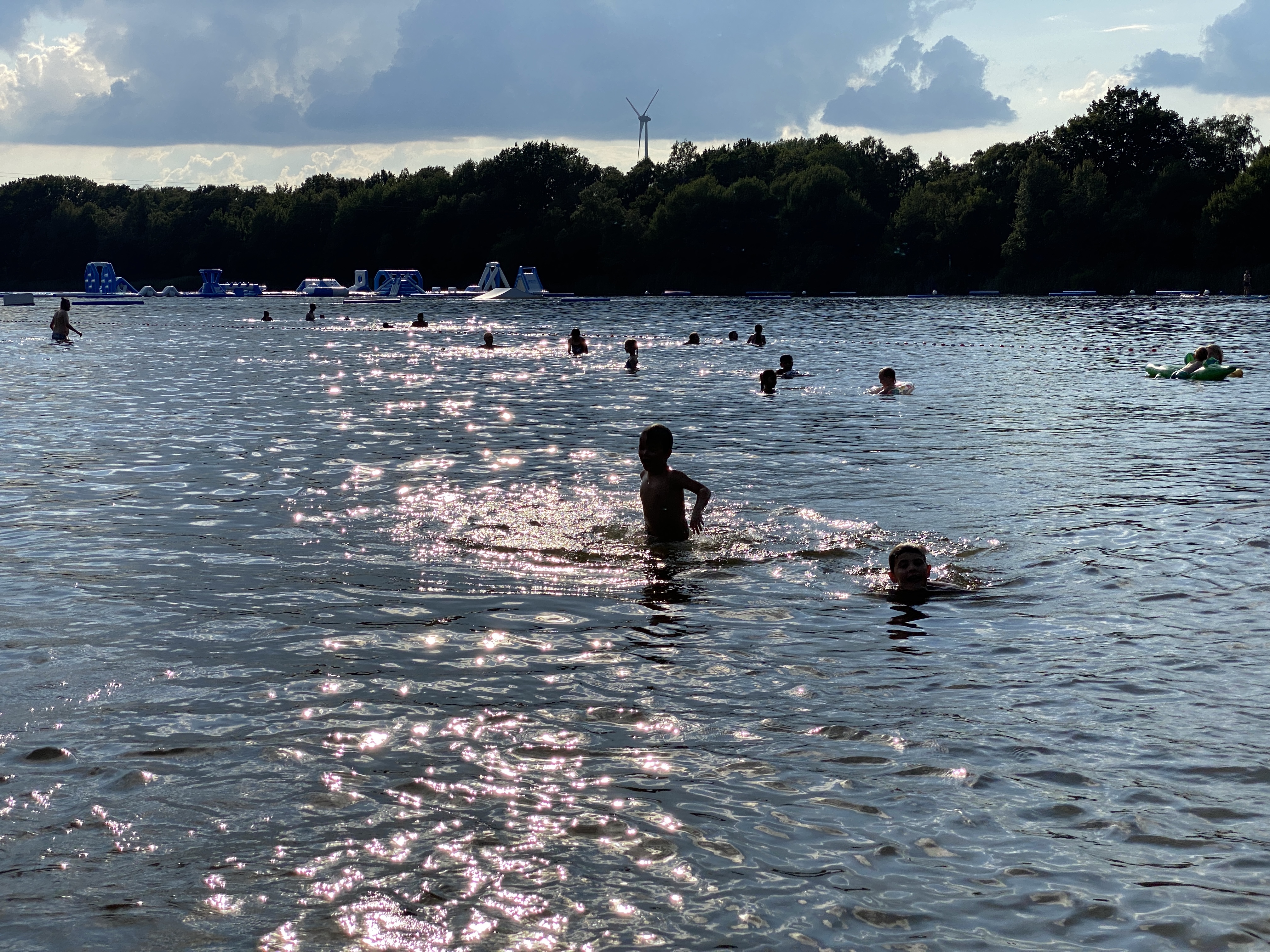 Cependant cela a été une véritable surprise. Le camping n’a rien d’extraordinaire en tant que tel mais il est accolé à une base de loisirs où nous avons pu nous baigner, faire de bodyboard, et un parcours du style total wipe out.