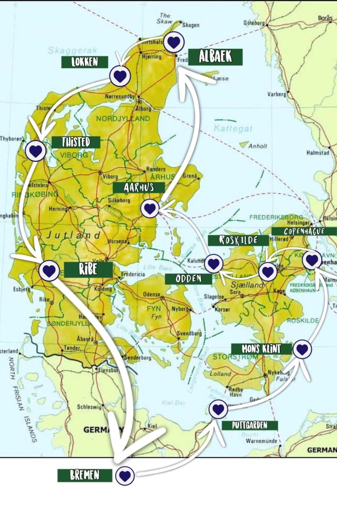 - Ribe – Brême : 350km soit environ 3h30 de route – 1 nuit.