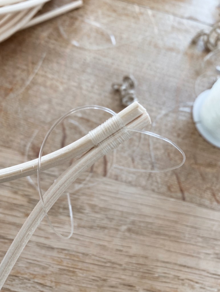 Dans un premier temps, couper les morceaux de rotin de la taille de votre choix. Pour ma part, j’ai opté pour 14 pétales et mes brins de rotin mesurent 60cm.