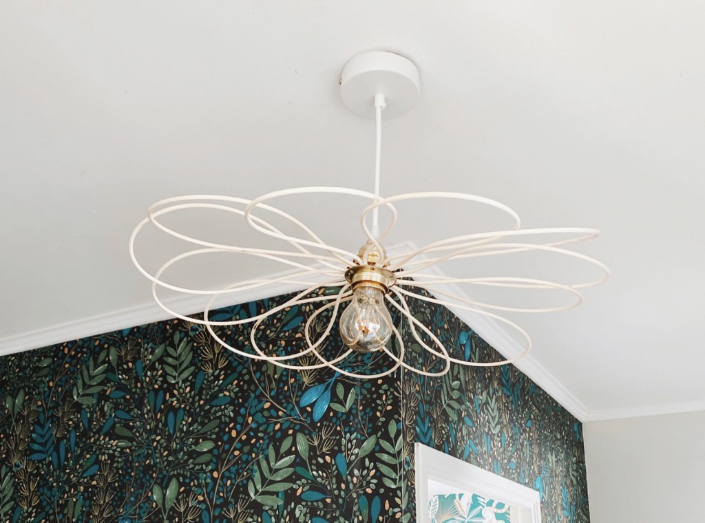 Nous avons enfin fini le palier à l’étage. Et il fallait une suspension pour parfaire le tout. J’ai donc décidé de m’y atteler.