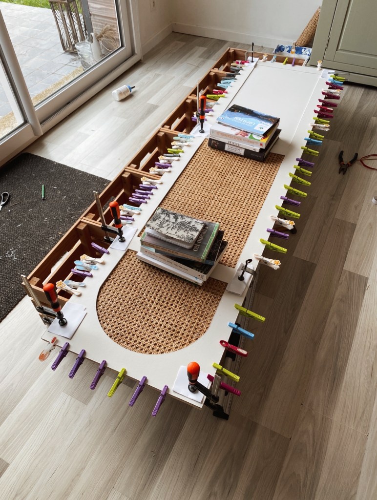 Utilisez des pinces à linge pour que la colle prenne partout et laissez sécher une nuit.