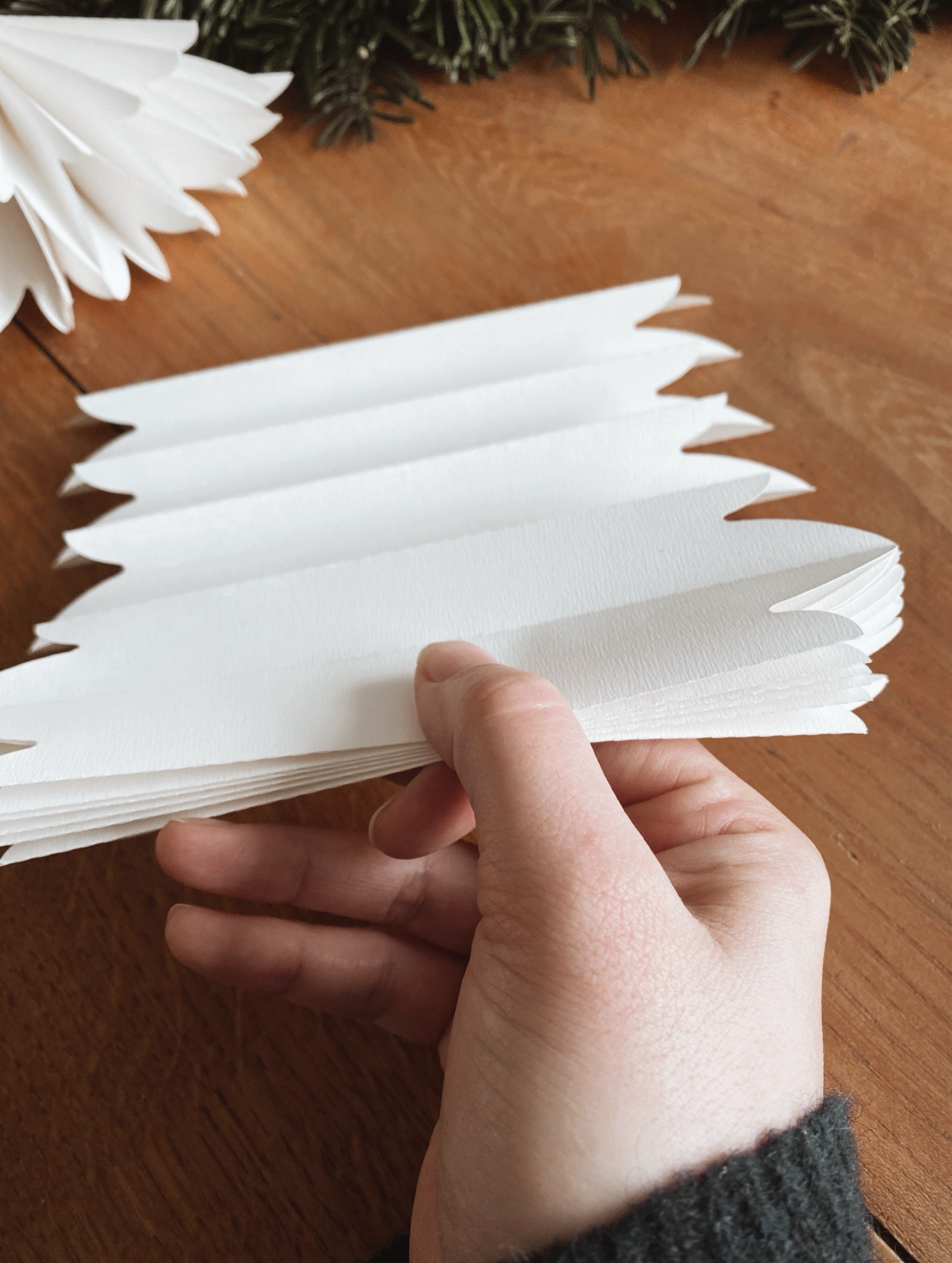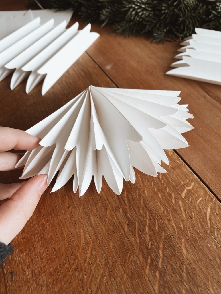 Pour cette étape, il faut assembler deux accordéons ensemble pour faire la première moitié de votre flocon.